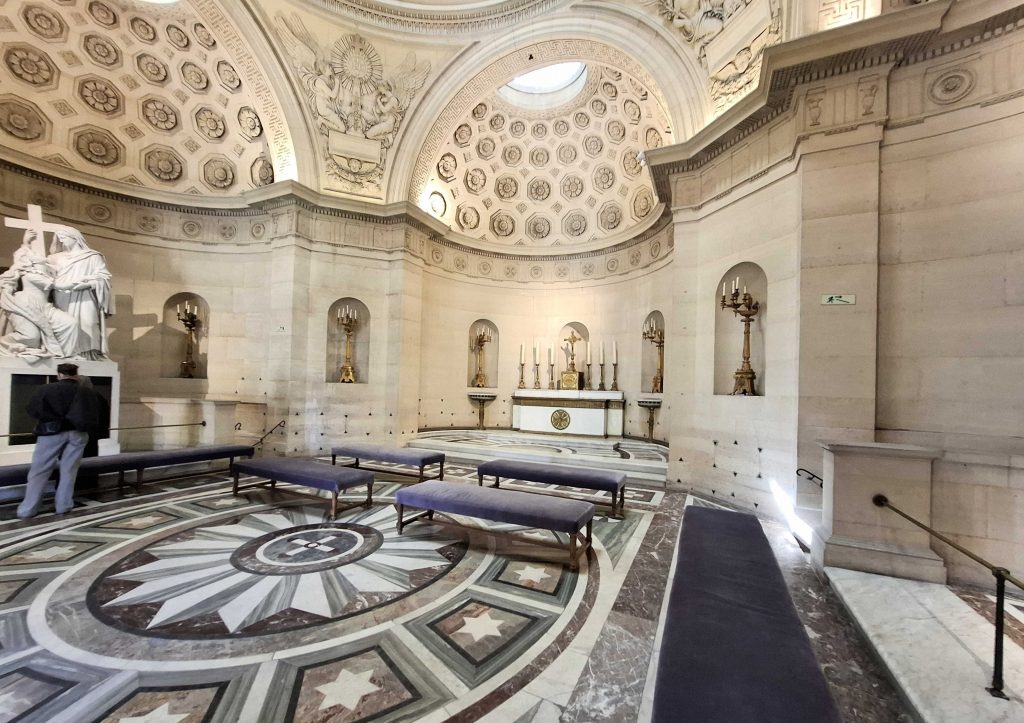 Im Untergeschoß steht ein dunkler Marmoraltar genau an jener Stelle, an der nach 21 Jahren die Überreste des hingerichteten Königs Ludwig XVI. exhumiert wurden. Ein weiterer Raum informiert über die Biographien von Wohltätern der Chapelle. Mehrfach stand das Monument kurz vor dem Abriss. Ein Anrainer, Jacques Libman, gab sich als reicher Amerikaner aus, der die Kapelle demontieren und in den USA aufstellen wollte. So konnte er die Zerstörung verzögern und damit verhindern.