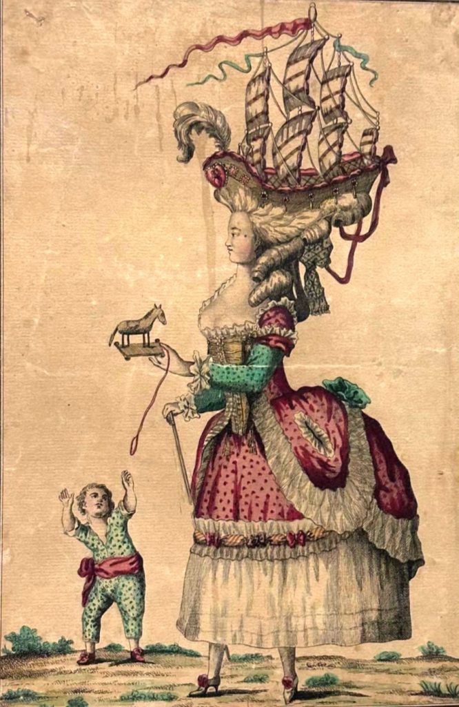 Einfachere Stoffe waren angesagt, jedoch mit Bordüren, Spitze und Schleifchen aufgehübscht. Kunstvolle Frisuren, wie Königin Marie Antoinette sie trug, lagen im Trend. Erste Friseursalons etablierten sich, aufwendige Haarkreationen waren nicht mehr allein dem Hof vorbehalten.